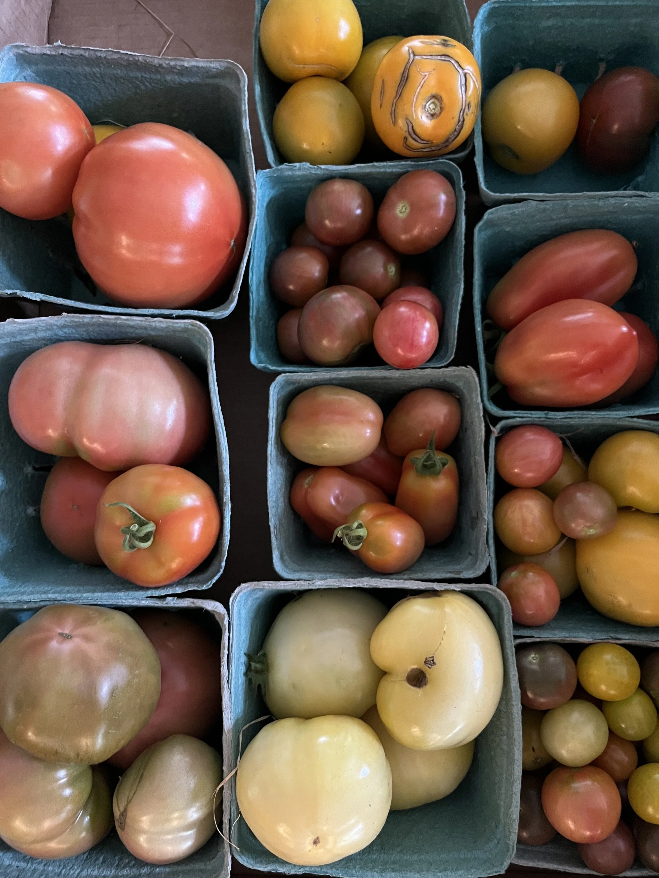These botanical fruits are special for me for another layer as well. Back in 2018 I was working on a farm in upstate New York. This was the biggest farm I’ve ever worked on: 20+ acres! Two days a week, I was in charge of harvesting the tomatoes. The farm had four greenhouses full of tomatoes - the picking and sorting would take me all day to do.
