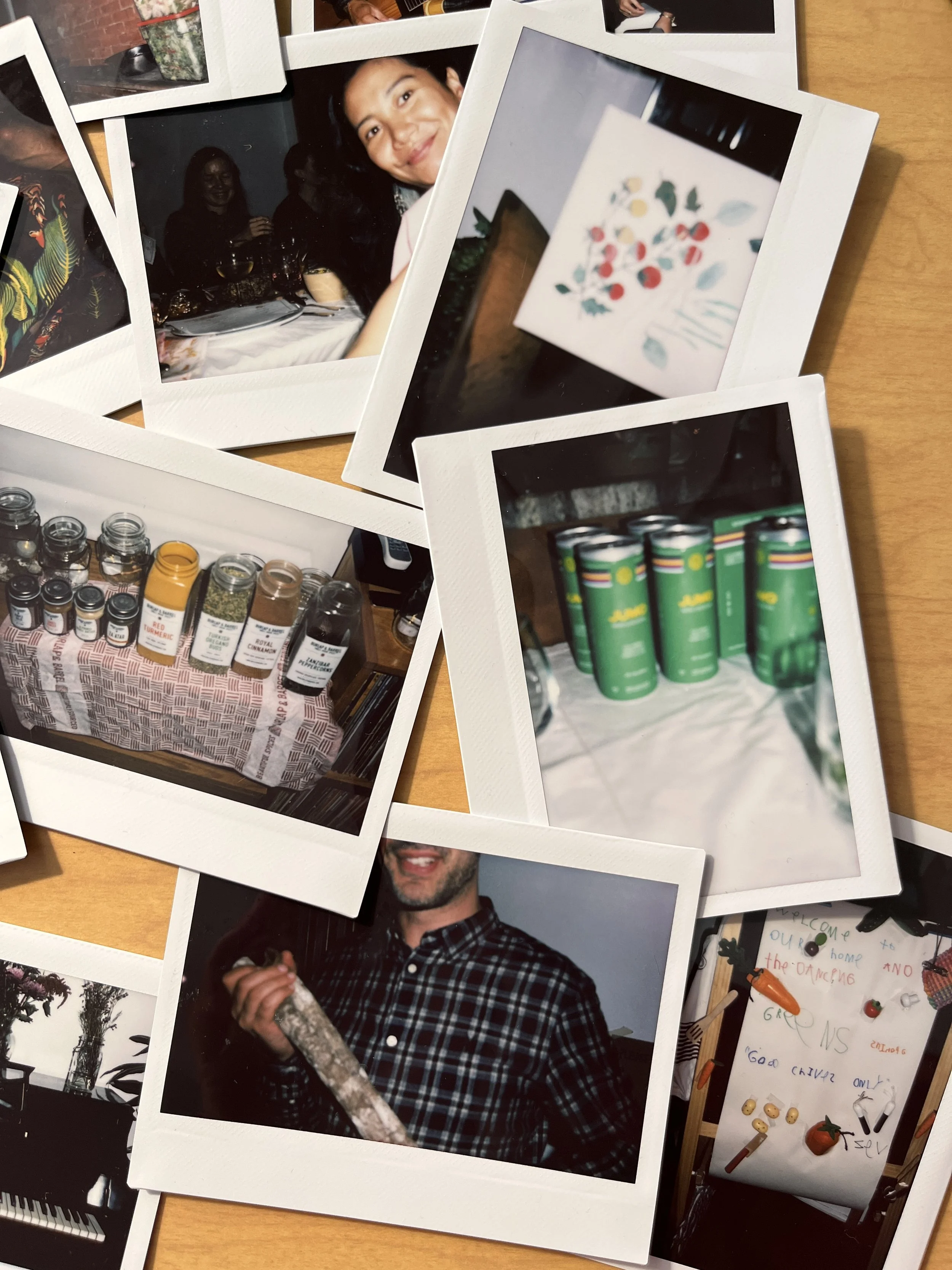 we started with a Jumo canned craft soju cocktail & bites in the backyard. Farmer Jamie taught us about soil with just the right amount of science. Emily & Peter Einhorn played sweet sweet music. inside we gathered around a long table for a multi-course family-style feast of Dancing Greens veg along with products from those we admire. we used organic linens naturally hand-dyed by artist Sophia Haas-Salmieri. dinner was paired with natural wines from Cellary and delicious spices from Burlap & Barrel. we enjoyed education and storytelling throughout the evening. and our resident photographer, 5-year-old Zev, really captured the magic of it all.