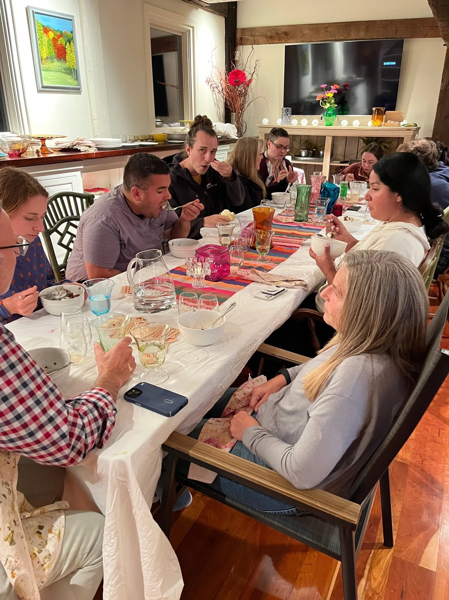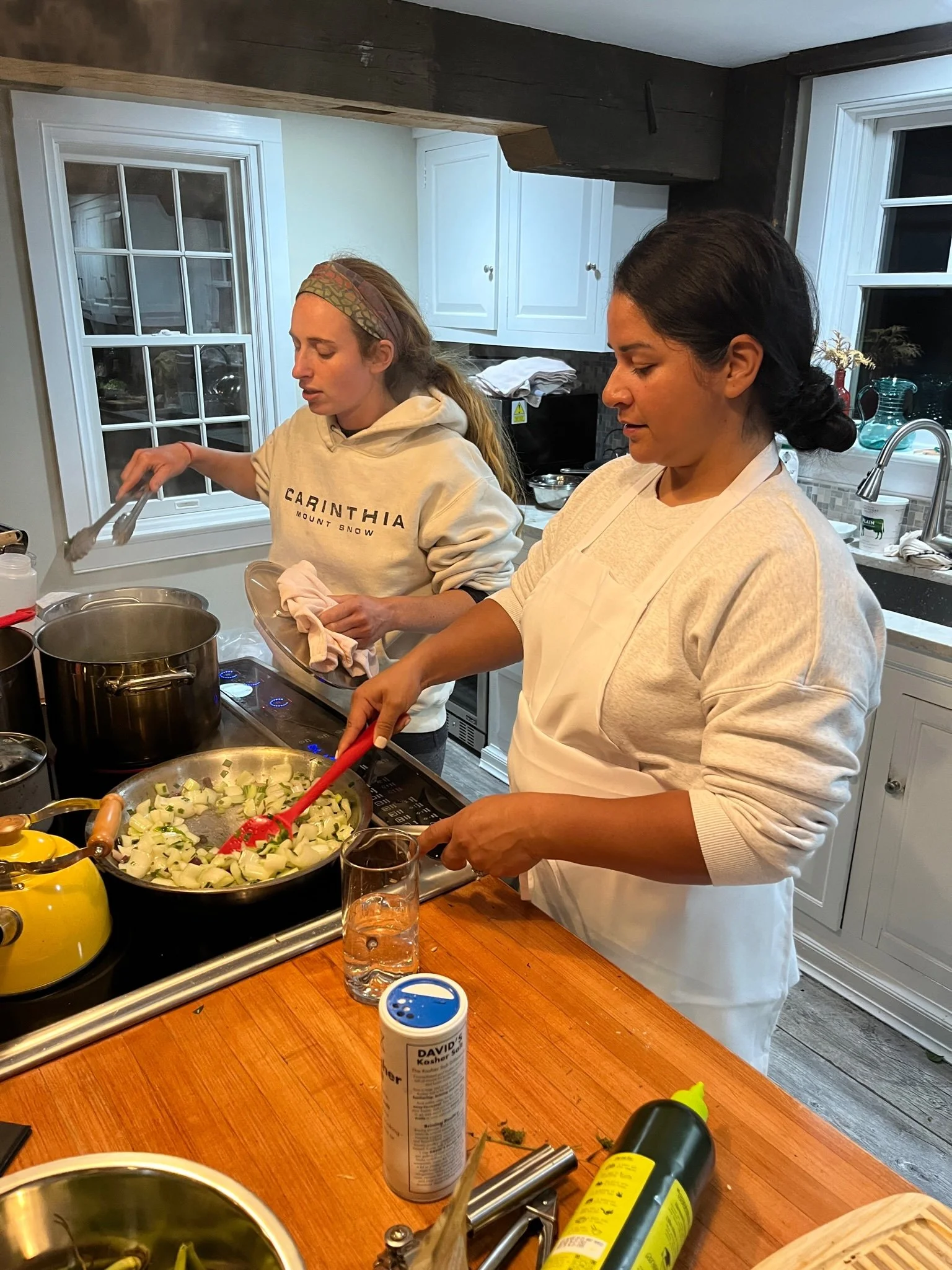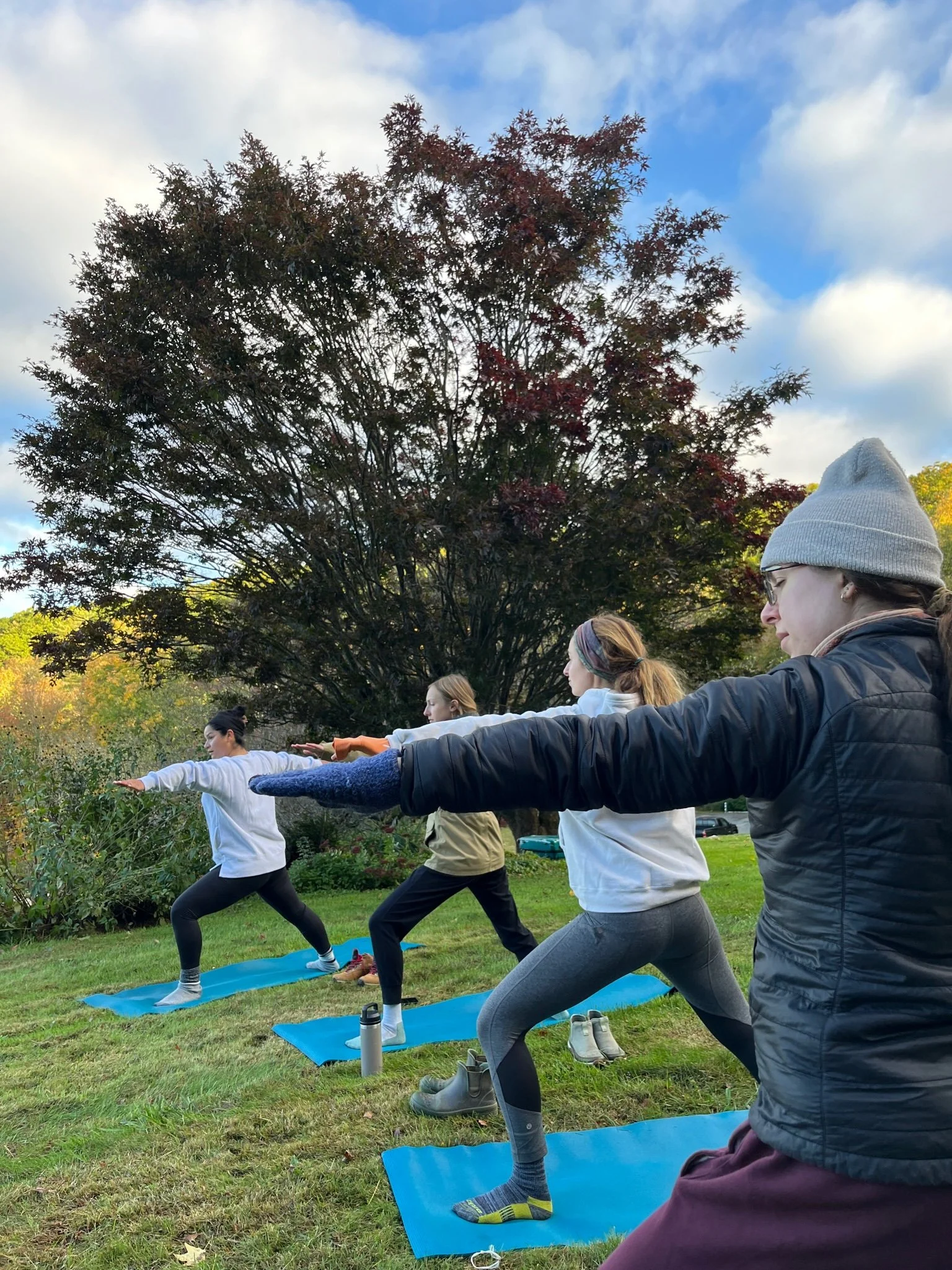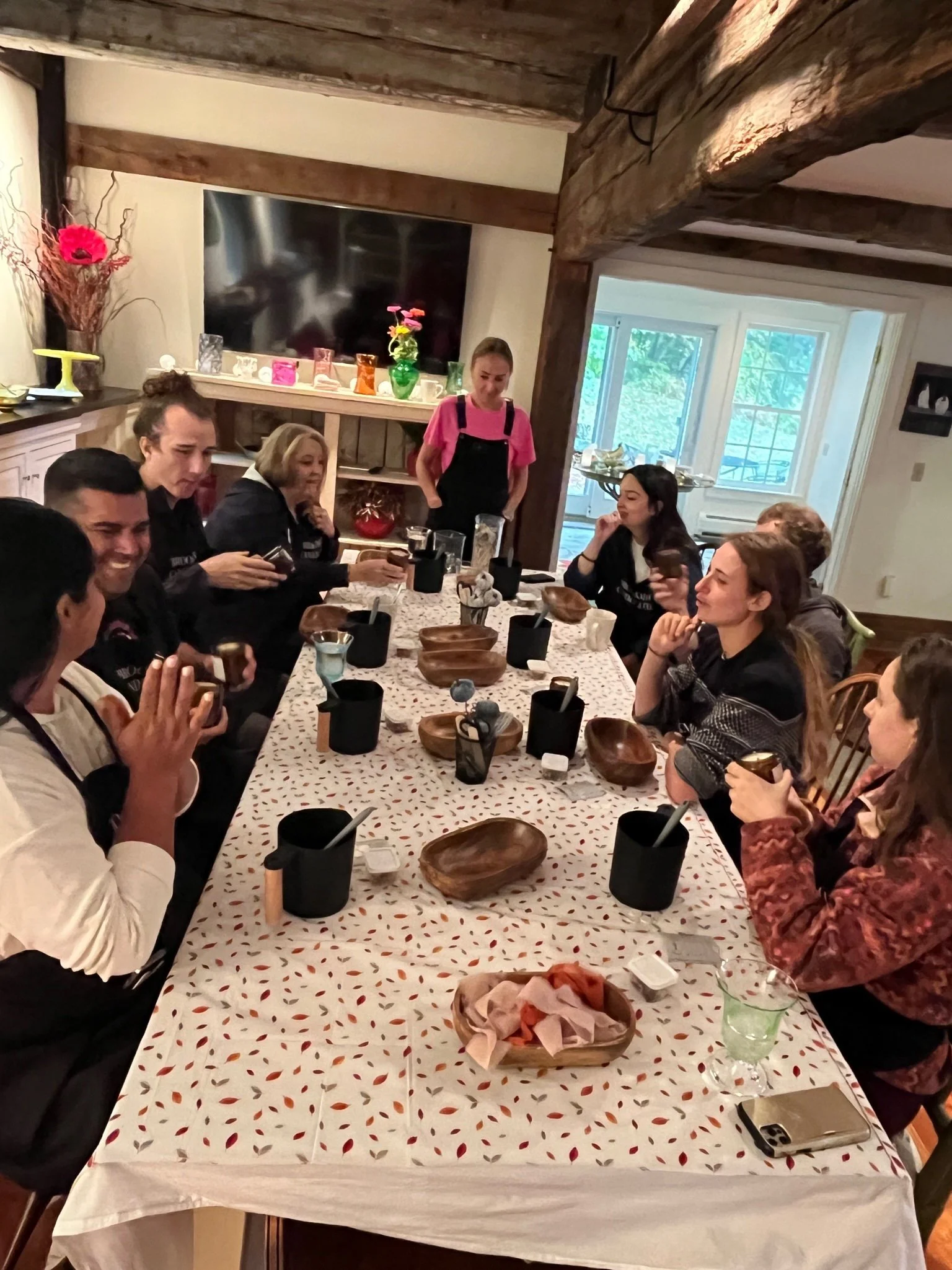 it was our first mini retreat on our mini farm and we loved every minute of it! we started with game night, obvi and a hearty stew of roasted veg & rancho gordo beans. in the morning we made natural luxe candles with Brookman Candle Co, a dream, after our breakfast of eggs made to order. we then followed Farmer Jamie to the farm for a tour and eduction around our farming practices and snacked on veg right out of the ground. nothing tastes better than a carrot pulled from the earth, yum soil. lunch was a feast of farm fresh food and a feast of farm & food discussion. we dug into the food system and what we can do close to home. we moved our bodies and our breath with Lifeworks Studio, then rested our bodies and our minds. Tamir joined us for dinner, we had passed bites, and course after course of food grown & made with love. we lit a fire and sang along all night! in the morning, we rose with the sun and joined Radiance Yoga outside for movement in the crisp sunshine air. then, pancakes for breakfast, a fave, and a stroll down the hill to the entrance of Beartown State Forest. we walked and laughed and oohed and awed at the trees and their pretty leaves. a sack lunch on the lake was all we need. to celebrate our hike we went to town to shop or we went to our beds to sleep. we gathered in the evening to make friendship bracelets and learn about composting from the expert. Chef Madison led us in a cooking lesson, unusual and exciting. with a mountain of veg from the farm in front of us, we created our own adventure and cooked a meal together, learning as we go. our feast was extra delicious this evening because it was made by all of us with our new skills and our new knowledge. we reflected on the weekend and became friends for life. on our last morning we ate a waste-not brunch and drank some wine, the bottle was open, so waste not. and we loved every minute of it.